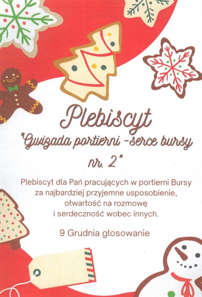 9 grudnia wśród Wychowanków Naszej bursy został przeprowadzony Plebiscyt „Gwiazda Portierni – Serce Bursy Szkolnej nr 2” – inicjatywa ta powstała, aby docenić Nasze wspaniałe Panie pracujące w portierni, które