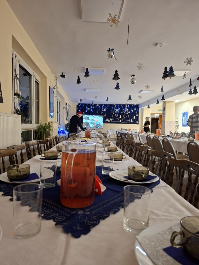 Już od progu gości otulał aromat tradycyjnych potraw oraz blask choinkowych świateł. Odświętnie udekorowana świetlica i stołówka, białe obrusy oraz dźwięk kolęd w tle sprawiły, że każdy poczuł się jak w rodzinnym domu.